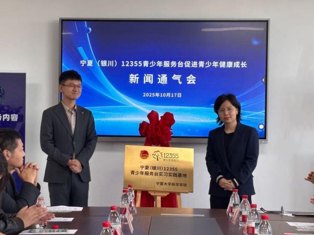 为深入贯彻落实习近平总书记关于青年工作的重要思想,积极响应共青团中央关于建设12355“一站式、综合性、属地化”服务体系的部署要求,做深做细做实服务青少年工作。10月17日上午,宁夏(银川)12355青少年服务台促进青少年健康成长新闻通气会在宁夏青少年活动中心(银川市青少年宫)召开。自治区团委副书记马萍为两校驻12355实习实践基地揭牌,各级各类媒体、相关政府部门及部分中小学校、社区负责人参加。